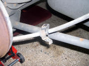 מאחורי מתלה המזלג נמצא הקפיץ המיועד להחלפה, במרכז הקפיץ נמצא הבולם הקדמי, הקפיץ יושב על מתלה מזלג כמו של גלגל קדמי של אופניים (מעניין מאיפה הרעיון?).