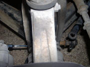 פתחו ושחררו את בורגי המתלה שסימנו קודם, הזרועות ישתחררו בקלות יחסית, הזיזו אותם הצידה שלא יפריעו. כווצו את הקפיץ על ידי הרמת הג'ק, אתם בדרך לשחרר את הבולם ולכן צריך להוריד ממנו לחץ ככל האפשר.