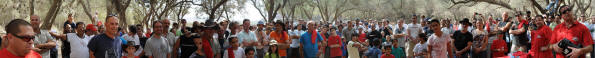 בכל שנה אנחנו חוגגים את המאורע במפגש גולשים. השנה חרגנו מהמנהג של חניון לילה אי-שם בדרום הנגב, על מנת לאפשר לגולשים רבים הרבה יותר להצטרף לארוע. ואכן, הבחירה ביום שישי בצהריים ובמיקום דרום-מרכזי למדי - יער חרובית בחבל לכיש - הוכיח את עצמו. מאות מגולשי האתר, על משפחותיהם, כ200 רכבי שטח (ועוד פריבטים-ליסינג רבים) התייצבו החל מהצהריים. היורה, המבשר האמיתי של תחילת עונת הטיולים היה אות משמיים - הראשון מני רבים - שסימן על הצלחת המפגש. גשם זלעפות אמיתי תפס אותנו על כביש 6 בדרך. אך הוא נחלש ונפסק לגמרי עד הצהריים, והשאיר שמיים מעוננים קלות ויום מושלם לפיקניק. (לחצו על הפנורמות להגדלה... סבלנות, קבצים גדולים!) כל סוגי הג'יפים והג'יפאים התקבצו לנחש ארוך לאורך השביל המקיף את חניון יער חרובית. ממועדון טריוס המייצג בגאווה את הצד הרך של עולם השטח, דרך שיירה ארוכה של סמוראים בהובלת מורי ואמיר, האינדיאנים - צ'רוקים וגראנדים, לנדרוברים מכל הגדלים והסוגים, טנדרים יפאניים ופולסייזים אמריקאים, טרופרים, פאג'רואים ולנדקרוזרים (כולל FJ40 אחד) וכמובן - ערב רב של סופות וסיקסים, ג'יפים מברזל, בכל צבעי הקשת.