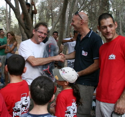 הפרס הראשון, מחשב כף יד Acer עם תוכנת ניווט שטח SkipperWay מתנת "בנצ'מרק" נפל לידיים ראויות במיוחד - מורי בן-לבן, מכונאי סמוראים, איש נעים ויקיר הפורום - שימצא בו שימוש רב, בזה אנחנו בטוחים, בהובלת טיולי הסמוראים הידועים שלו תחת הסיסמא "אתם שוברים, אני מתקן". גרעין צוות האתר - חנן, סביון, אסף, אריק, אייל, דרור ונמרוד - מודים לגולשים הרבים שהגיעו. על הסדר המופתי, האוירה השלווה והנעימה, הבשר הטוב והבירות שטעמנו על המנגלים הרבים שהיו פזורים ברחבי החורשה. יש להודות שחששנו מגדילה של מסורת המפגש המדברי, האינטימי, לארוע המוני שכזה - אבל הארוע היה המוני רק במובן שאכן היו בו המון ג'יפאים. חיזקתם בהתיצבותכם ובשיחות את התחושה שג'יפולוג, כאתר תוכן וכבית לקהילה, ממשיך לצעוד בדרך הנכונה - עם הגולשים, הג'יפאים האמיתיים. אתם. אז שנה טובה, טיולים מוצלחים... ותודה! אלבום תמונות נרחב מהארוע (צילמו: אסף קציר ושמוליק לודוויג) |