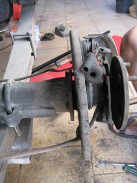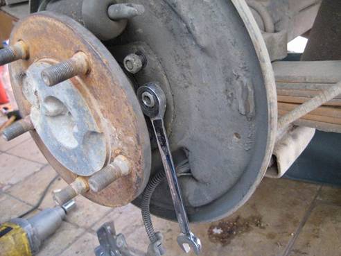 7. לאחר הוצאת שישה אומים עם מפתח 1/2, יש לשחרר את הצלחת, ולמשוך אותה ואת הציריה החוצה. כמה? כחמישה סנטימטרים, לא יותר.