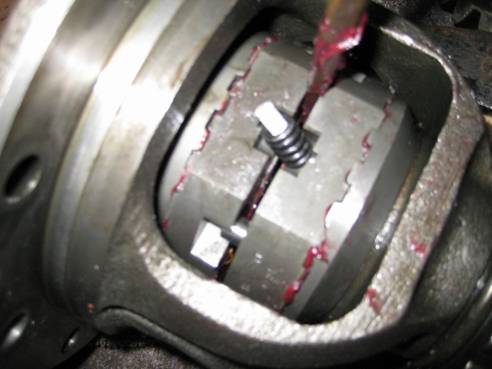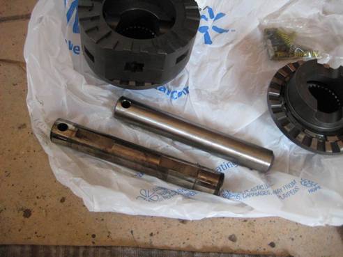 10. יש להפריד את הרינג מהדיפרנציאל. לשמחתי, ברשותי פטיש אויר חשמלי, והוא זה שעשה את פתיחת הברגים. יש לסמן, בטיפקס/צבע/מסרט, את מיקום הרינג על גבי הקייס, הכל צריך לחזור לאחר מכן למקומו. אם אין לכם פטיש אויר, אך יש לכם מלחציים על מנת לתפוס את הדיפרנציאל שלא יסתובב, מה טוב. אם אין גם את \ה – תיאור של חנן לביצוע ללא פטיש אויר וללא מלחציים: " שמנו גלגל אחד על האדמה עם החלק החיצוני שלו לכיוון האדמה. על הגלגל שמנו ציריה בצורה אנכית. על הציריה הלבשנו את הדיפרנציאל. בצד השני של הדיפ' שמנו את הציריה השנייה ובמקום של הצלב של הציריה העליונה הכנסנו לום וכך הדיפ' לא יכול להסתובב." 11. כעת יש להוציא את הרול-פין, או בשם המדויק C-PIN. בד"כ, ניתן להוציאו עם מקדח 5 מ"מ (לא בקדיחה, בדפיקה) תוך דפיקה עדינה בפטיש. אצלי הוא היה תפוס חזק מאד, ועיקם 4 דרנים ומקדחים לפני שיצא בכוח בלתי סביר. ממליץ, לכן, להכין מראש דורן איכותי, 5 מ"מ קטרו, ו30 מ"מ לפחות אורך החלק התחתון. המהדרין, יכינו מראש רול-פין רזרבי, למקרה חירום.