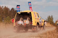 היום השני של הראלי - בהרבה מובנים - היה בעצם היום הראשון עבור עופר קוקוס ונועם שמיר, אנשי 'צוות אבסולוט'. אחרי יום של הכרות עם הרכב החדש ועם כללי תחרות חדשים לחלוטין הגיע הזמן לתת קצת גז. אז הם נתנו, והתחילו להנות, ובדיוק אחרי 7 ק"מ הלך מיסב בגלגל הקידמי שמאלי. בעקבותיו, גם הציריה נאספה אל אבותיה... עופר ונועם לא מוותרים וממשיכים את כל הספיישל במהירות של 30~40 קמ"ש. טיפה מאוחר יותר, גם הברקסים נגמרים – וזה רק גורם להם להיות יותר נחושים. משאית המטאטא, זו שמזנקת אחרונה ומוודאת כי לא נשאר אף מתחרה על המסלול, מנסה לשכנע אותם לפרוש, אולם הם טוענים בתוקף שהם לא מבינים רוסית וממשיכים עד הסיום. בהמשך, יעברו השניים ספיישל נוסף באותה מתכונת כשבראש שלהם יש מטרה ברורה – לסיים את היום על הגלגלים. בלילה, תתוקן התקלה בעזרתם של כל אנשי הסיוע, והכל כדי לזנק בבוקר היום השלישי. עוברות כמה שעות והזינוק מגיע. צוות אבסולוט מזנק אחרון ומתחיל לעקוף רכבים מזדנבים. הספיישל, 200 ק"מ אורכו, מהיר מאוד ודורש תשומת לב רבה מצד הנווטים. לקראת סיום הספיישל נופל הלב של הצמד לתחתונים, לא פעם אחת, כי אם פעמיים. בראשונה, כשהם רואים את רכבם של ניצן שקל ודובי נוימן וובצמוד אליו שני מסוקי הרפואה של הראלי, ובשניה, כאשר הם שומעים את זעקת הסנטינל (המכשיר שאמור להתריע על עקיפה) ומפנים את הדרך לכיוון ימין, רק כדי לפגוש את רז והלל עוקפים מימין. מתוחים? עוד פרטים בהמשך. את הסטייג' השני סיכמו אנשי 'צוות טלפארמה' בחיוב רב. הנסיעה זרמה מבחינתם, החלודה הורדה והכל היה תקין מבחינה מכנית. ההחלטה מהיום הקודם להוריד קצב הוכיחה את עצמה וניצן שקל ודובי נוימן היו מרוצים. בבוקר היום השלישי נרשם חשש קל בנושא הניווט מצידו של דובי נוימן, נווטו של ניצן שקל. תאור הסטייג' נתן דגש רב לעניין הניווט וציין אותו כקשה. בפועל, לא נתקלו השניים באף בעיה בתחום זה. לעומת זאת הם נתקלו בבעיה אחרת – עץ. מסיבה שלא ברורה עד לרגע זה, פגעו השניים בצורה חזיתית בעץ, כ-15 ק"מ לפני סיום הספיישל. אמצעי החרום ברכב הופעלו וכמה דקות לאחר מכן נחתו 2 מסוקים מטעם הנהלת הראלי, ובהם הרופאים המוטסים. ניצן ודובי הוטסו אל מחנה הלילה ומשם נלקחו באמבולנס לבית החולים המקומי, לטובת בדיקות שונות. לשמחתנו, אנו יכולים לעדכן כי השניים בסדר גמור וכי למזלם הרב הם לא נפגעו. בדקות אלו, השניים "מתלוצצים עם רופאיהם" (ובעיברית פשוטה – צועקים עליהם בכל שפה אפשרית ומנסים להתחמק מ-24 שעות של השגחה...). פאג'רו המרוצים שננטשה בשטח תאסף בשעות הקרובות על ידי ה'קמיון בלה' – משאית המטאטא. אחרי ההתחלה המצויינת של 'צוות פוינטר' ביום הראשון, הגיעו יומיים פחות טובים. כידוע, יש גם ימים כאלה במרוצים. הסטייג' השני של הראלי היה בדיוק כמו שרז הימן אוהב – מהיר. ואם נצטט אותו – "זה הרגיש כמו מרוץ WRC". את הספיישל השני של אותו יום, באורך של 69 ק"מ, הם סיימו לאחר 33 דקות – את החישוב של המהירות המוצעת אתם מוזמנים לעשות לבד... אבל כמו שאומרים, לכל מטבע יש 2 צדדים, והפעם המטבע הזו היתה שווה לא מעט שטרות. 10 שטרות, אם נדייק, כל אחד מהם בשווי של 100 יורו. הסיפור הוא כזה – מדי פעם עובר הספיישל גם באזור מיושב, כפר כזה או אחר, וכך היה גם אתמול. הלל סגל, נווטו של רז, מצליח לפספס את החיווי בספר הדרך המורה על אזור בו המהירות מוגבלת, והשניים מטיילים להם בתוך הכפר כשהספידומטר מראה מהירויות פליליות בעליל. מכשיר ה-GPS יודע להקליט דברים שכאלה, וכך הוא עושה כמובן. רז והלל מסימים במקום ה-11 הכללי, אולם יודעים כי העונש עוד יגיע. את היום השלישי מתחיל צוות פויינטר כמו שהוא רגיל – בפול גז. הספיישל זורם, הניווט עובר ללא דרמות והכל תקין עד שהמנוע מתחיל להתחמם. הלל, האיש הטכני והאבא של הרכב, מפעיל את המפסק של הוונטה. כשמחוג החום ממשיך לעלות, הם מבינים כי הבעיה חמורה יותר ועוצרים. מכסה המנוע מורם והאשם מתגלה במשאבת המים. הנחל הצמוד מתגלה כמקור חינמי למים וכך ימשיכו רז והלל כשהם משקים את 