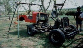 חשבתי שכל מה שצריך זה פחחות יפה וזהו. מהר מאד גילינו שתי בוכנות לא עובדות (איך לא שמנו לב לזה?) ומערכת חשמל שתכבד כל מכשיר חשמלי מתקופת המלחמה הקרה (שני גידים מובילים למנוע ועוד עשרות שמתפזרים לרחבי הרכב בלי חוקיות מסוימת). התבררה גם איזה מן ג'יפ זה בדיוק, מלבד "אדום": וויליס ג'יפ CJ5 מודל 1958.