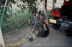 ...תהליך הפרוק מתקדם מהר ואני מאד מאד מרוצה (מה כבר יכול להיות?). בעזרתה של מערכת נדנדות גינה ישנה וכננת הוסר הבודי אחר כבוד. העבודה מתחילה (המראה ההמום על הפנים שלי מעידות יפה על מצב הרכב).