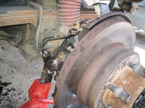 לא לשכוח למלא נוזל בלמים ולנקז אוויר. ניקוז האוויר הולך ככה: מתחילים מהגלגל הכי רחוק ממשאבת הבלם עד לגלגל הכי קרוב אליה. שמים בלוק עץ מתחת לדוושת הבלם כדי שיגביל את תנועת הדוושה לטווח שהיא מסתובבת בו בדרך כלל, אחרת הבוכנה במשאבה הראשית מגיעה לאיזור שהיא לא נמצאת בו בדרך כלל, איזור חלוד ומלוכלך, ונגרם נזק למשאבה. מבקשים מחבר לפמפם פעמיים-שלוש את הדוושה. הוא משאיר את הדוושה לחוצה. פותחים את בורג הניקוז בקליפר, ישתחרר קצת אוויר והדוושה תרד, סוגרים את האום. מרשים לחבר לעזוב את הדוושה. חוזרים על התהליך עד שיוצא נוזל צלול ללא בועות אוויר. עוברים על כל הבלמים כך. מוודאים שתחושת הבלימה טובה בדוושה. אם לא, אז יש לחזור על תהליך הניקוז. עד כאן תואר התהליך "על פי הספר" . בפועל, כמו שכבר נרמז קודם, לפמפום הזה של הדוושה יש נטייה להרוס את המשאבה המרכזית, ולכן עדיף לנצל מה שיותר את הגרביטציה לטובתנו. שמים נוזל בלמים במיכל, פותחים פיטמת ניקוז, ונותנים לנוזל לרדת לאיטו בצנרת, למלא את הצילינדרים בקליפר ולצאת מפיטמת הניקוז. איטי אבל בטוח. בגלל שכל המערכת מלאה באוויר יתכן שתצטרכו בהתחלה לעזור לנוזל לרדת בכמה פמפומים עדינים במהלך העליון של הדוושה, בלי לסגור את פיטמת הניקוז. בתהליך הזה גם לא צריך עזרה של חבר. בכל מקרה, לפני נסיעה חובה לוודא שהתחושה בדוושת הבלם תקינה לגמרי. הערות: לאחר שפירקתם ממקומו חלק מסוים, החזירו את הברגים שהחזיקו אותו למקומם. כך תוודאו שאתם לא נשארים עם פיילה של ברגים שאתם לא יודעים מהיכן הגיעו, וזה יוודא גם שלא יאבדו לכם ברגים ושייבות במהלך העבודה. לא לשכוח למלא שמן גיר ידני 80W-90 בסרן. הבדיקה של הנעילה מתוארת בספר ההתקנה, ונראית כך: גלגלים קדמיים באוויר. טרנספר משולב ל4X4 , נועלי טבור נעולים. מסובבים גלגל ימני קדימה בכוח. הוא אמור להיעצר. מחזיקים אותו בכוח קדימה. מבקשים מחבר שיסובב את הגלגל השמאלי אחורה. הגלגל צריך להסתובב. תוך כדי הסיבוב הנעילה תשמיע תקתוקים. זו בדיקה ראשונה. מסובבים גלגל ימני אחורה בכוח. הוא אמור להיעצר. מחזיקים אותו בכוח אחורה. מבקשים מחבר שיסובב את הגלגל השמאלי קדימה. הגלגל צריך להסתובב. תוך כדי הסיבוב הנעילה תשמיע תקתוקים. זו בדיקה שנייה. מסובבים גלגל שמאלי קדימה בכוח. הוא אמור להיעצר. מחזיקים אותו בכוח קדימה. מבקשים מחבר שיסובב את הגלגל הימני אחורה. הגלגל צריך להסתובב. תוך כדי הסיבוב הנעילה תשמיע תקתוקים. זו בדיקה שלישית. מסובבים גלגל שמאלי אחורה בכוח. הוא אמור להיעצר. מחזיקים אותו בכוח אחורה. מבקשים מחבר שיסובב את הגלגל הימני קדימה. הגלגל צריך להסתובב. תוך כדי הסיבוב הנעילה תשמיע תקתוקים. זו בדיקה רביעית.
