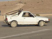 טנדר של פעם הגיע למנחת בערד לבדוק את הסחורה החדשה. מהלך המתלה האחורי והקדמי של הנבארה סביר לקטגוריה. נעילת דיפרנציאל אחורית מקורית היא אופציה שאסור לוותר עליה בהזמנת טנדר כזה. זווית הגישה לא מרשימה, אבל פגוש פלדה תחליפי במקום הפלסטיק המקורי ישפר את המצב בקלות. גחון הנבארה מעוצב היטב, המכלולים כולם ארוזים יפה בגובה קורות השלדה המסיביות. כנפון גומי על מוט הפנהרד בסרן האחורי של האקטיון, חידוש טכנולוגי שפשרו לא ברור. מרווח הרגליים במושב האחורי של הנבארה ענק, לא להאמין שזה טנדר. הבעייה שהמושב עדיין ניצב מדי, והישיבה הזקופה אינה נוחה לאורך זמן. |