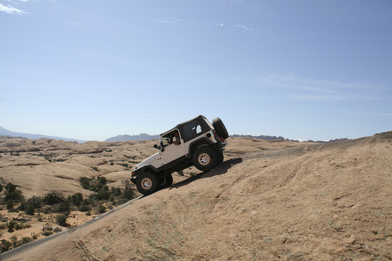 פרקי היומן הקודמים: היום השלישי - Top of the world היום הרביעי - Arches national park כמייל לפני שהגענו לHell's Revenge, המסלול הנבחר להיום וללא ספק אחת מגולות הכותרת של מואב, ראינו בצד שמאל את הLion’s Back סגור לו בצד. האמריקאים אמנם מצדיעים לגישה של חופש הפרט אבל בעל השטח סגר את המקום. "גב האריה" הוא אולי הגבעה היחידה הידועה ביותר באזור - בטוח ראיתם את אחד מסרטוני הוידאו של רכב מטפס או יורד את שלוחת אבן החול הארוכה-ארוכה הזאת - ומתהפך... בכניסה למתחם הכולל את מסלול "נקמת הגהנום" (שם ציורי אבל הולם כפי שגילינו) משלמים 5$ לרכב. מיד אחרי זה בצד שמאל מתחיל המסלול שמוגדר 4.5 בסולם דירוג העבירות המקומי, דרגה גבוהה ביותר שאומרת שחלק מהמכשולים עבירים רק לג'יפים משופרים מאד על צמיגי ענק. חיכינו לתורנו להכנס מייד אחרי קבוצה של סמוראים וויטרות משופרים, משופרים יותר ומשופרים ויותר מדי. כן, יש סדרן בכניסה למסלול שטח. מתחילים את הנסיעה בטיפוס על אוכף סלעי ו... אין דרך חזרה, הדרך לגהנום היא מסלול חד סיטרי. הדרך ארוכה ובאמת, פחד אלוהים. אין פה מדרגות ענק ובולדרים, מה שיש זה עליות וירידות על אוכפים של אבן החול הידועה בשם המקומי Slickrock, בזוויות כמעט בלתי אפשריות, חלקן חדות כתער. עליות שהחלק האחרון שלהם פשוט מפחיד, ולא בגלל שכבר לא רואים את הדרך קדימה אלא בגלל הזווית והרעש של כמה מהצמיגים מאבדים אחיזה. היו בדרך שתי עליות שנשבעתי בי שאני עושה הכל כדי לא לרדת אותם אחר כך. המשכנו בדרך וראינו חבורות חבורות, עם ג'יפים, טנדרים, ורכבי שטח בלתי מוגדרים לחלוטין. מגוון אדיר של צורות וצבעים, כל מה שיש לאמריקה להציע נמצא במסלול הזה בשבוע של הספארי. החבורה של הסמוראים כבר מזמן לא איתנו, הם לקחו שביל קיצור באחד מהפעמים הספורות שחזרנו לקרקע מרצועות הרי הסלע. בדרך עברנו במכשול שנקרא Bath Tub או בשמו האחר, הCar Wash. זהו שקע בסלע שנראה כמו אמבטיה, מי שבאמת יכול – נכנס אליו ומנסה לצאת ממנו עצמאית. ראינו שם קבוצת רכבים שכנראה סיימו קצת לפני שהגענו. לידו היה שקע קטן יותר. לתוכו נכנס רגלר משופר "קלות"... בסופו של דבר ולאחר המון נסיונות, הזדקרויות ומכות בבודי ובפגושים – בעזרתם של חבריו שמשכו אותו עם רצועות ולא נתנו לו להזדקר ולהתהפך אחורה – הוא מצא את עצמו בחוץ. |