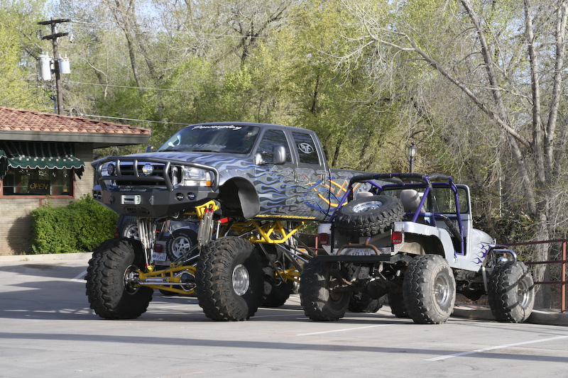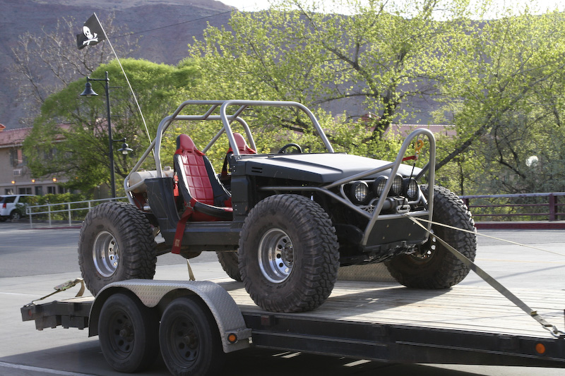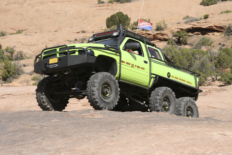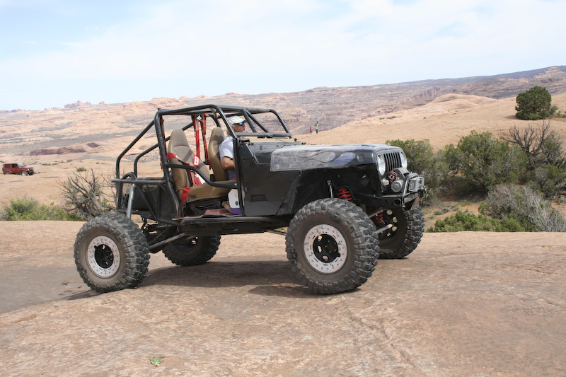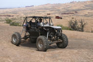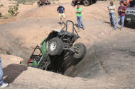 שער הגהנום המשכנו את דרכנו, לרוב לבד אך כמובן, כל פעם שהגיע חבורה מולנו או מאחורינו – נתנו להם לעבור. אנחנו עושים את זה לאט. בהמשך הדרך, או יותר נכון 0.6 מייל מהסוף – ישנה צומת. ימינה – ממשיכים במסלול. ישר – מגיעים לOverlook שצופה מלמעלה על נהר הקולוראדו ולידו – מכשול הHell’s Gate. הגענו עד לפה, לא נמשיך ? אז הנוף מהמצפה היה מדהים ביופיו. ממש לטייל על צמרות ההרים. והם גבוהים. הקולורדו זורם לו שם הרחק למטה ואנחנו ממשיכים לכוון הHell’s Gate. הגענו לשם כדי לצפות בחבורה של רוביקונים בדרגות שיפור שונות עולים את כל ה"מעלה" עם כננות המעוגנות לשלושה רכבים. בכל כבל של כננת היה מעין דינמומטר בקצה עם תצוגה אצל אחד המשקיפים וככה היה ניתן לדעת איזה משקל מועמס על הכננת. בכל מקרה, צפינו בשני רכבים עולים באיטיות והמשכנו בדרכנו חזרה. בהמשך הדרך, הגענו למכשול בו התנגח בלייזר משופר וניסה את מזלו. בשניית אתנחתא שאלנו אותו לדרך הקצרה חזרה. הרי כבר ראינו הכל. רוצים להיות שלמים אחרי זה. נסענו לפי הכוון שלו והגענו למעבר סילעי קשה ועמוס בבולדרים. אני חושב שזו הפעם הראשונה שההאמר קצת כעס עלינו. התיישבנו לשניה על מדרגות הצד – והן מצידן עשו אחורה פנה ונתקעו להן בצמיגים. עברנו את החלק הזה, מצאנו חתיכת גזר עץ ולעבודה. צד אחד לתושבת של מדרגות הצד. צד שני לרצפת הסלע...ובתאום – נסיעה איטית לאחור. מדרגה אחת התיישרה. השניה בדרך. בסופו של דבר יצאנו מאותה נקודה בה נכנסנו, אחרי עוד שתי עליות בהן יעל עלתה קודם ברגל כדי לראות אם מישהו בא מולנו - ואכן באו. |