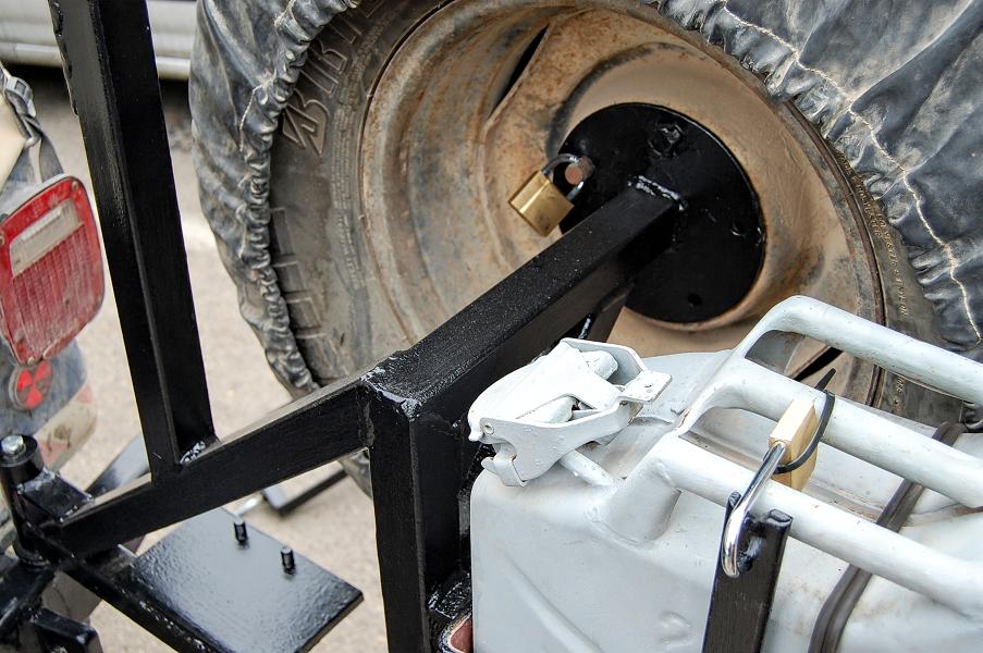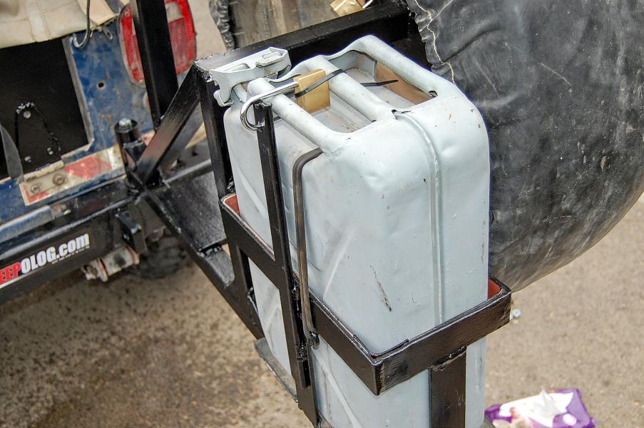 בכדי שג'ריקן הדלק יהיה כמה שיותר נמוך וקרוב לדלת האחורית החלטתי לבנות את המתקן לא כמשולש שווה שוקיים אלא כמשולש ישר זווית שהאנך שלו נמצא במרכז המתקן והיתר יורדת לכיוון הציר. בצידו השני של המשולש יושב הג'ריקן בתוך מסגרת בנויה מברזלים שטוחים.