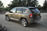למי שמתעקש לבקר בשטח, יש כפתור שנועל את ההנעה לכל הגלגלים ואת הדיפרנציאל הארכי, לשימוש בשטח בלבד. על הילוך נמוך, כמובן, אין מה לדבר, ובכך הסתיימו התהיות, אם היו. ובכל זאת, מבט מתחת לחצאית מגלה שמהנדסי ג'יפ חשבו עליו במונחים של רכב שכן מבקר בשטח מדי פעם. לאחר שהתרגלנו לעדר ג'יפונים שבנויים כמו מכונית פרטית בתוספת הנעה לכל הגלגלים, הרי כאן המבנה כולו מעט מאסיבי יותר- זה עדין לא ג'יפ בגודל מלא, אבל הגחון מישורי כמעט לחלוטין, עם כל המכללים (כולל האגזוז!) מעל גובה קורות השלדה. המיגון המקומי שהיבואן התקין מגן על האיברים הרגישים, ויוצר גחון חלק ואחיד. מבט על זרועות המתלה מגלה זרועות חסונות יחסית, עם מתלה אחורי מעניין- תמוכות מקפרסון שבהן המשולש התחתון בנוי למעשה משתי זרועות, כמתלה רב- חיבורי. הפרט המעניין ביותר הוא הזרוע התחתונה של המתלה האחורי, שמתחילה ממש מאמצע הג'יפ, מה שאמור לספק שיכוך טוב בשבילים. ואכן, נסיעה בשבילים החקלאיים של השרון מאפשרת לג'יפ להתקדם בביטחון רב, במהירויות סבירות, וגם מהמורות מזדמנות וחריצים שג'יפונים אחרים מתרסקים עליהם, לא מזעזעים את נוסעי הקומפאס יותר מדי. באחד השבילים אנחנו נוסעים במקביל לטנדר יפני עם מדבקות גדולות של פיקוח זה או אחר. השביל לא משובש מאוד, אבל עדיין הטנדר נאלץ להאט, מיטלטל ללא רחמים, כאשר אנחנו נוסעים בנינוחות במהירות גבוהה בהרבה. חשוב לא להגזים, כי כשהמהירות עולה ומגיעה למהירויות שעדיין שמורות רק לרכבי שטח בגודל מלא, הוא מתחיל להתנדנד, חסר ריסון.