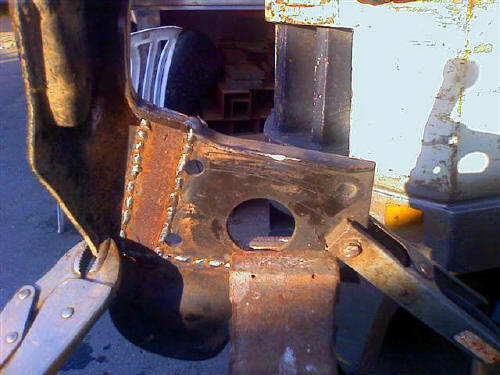 2. יש להקפיד על חיתוך מדויק של 2 הפאות לקבלת המשטח אותו יש להנמיך: 3. השחזת המתכות לפני הריתוך ליצירת פאזות: 4. הזזת המשטח החתוך ב3 ס"מ וקיבועו – שימו לב כי הסימון החשוב ביותר עוד לפני החיתוך,הוא האנך העובר דרך מרכז הטבעת הגדולה וממשיך לפחית הברזל. היצמדות לסימון זה תבטיח הנמכה בלבד של הפלטה החתוכה ללא סבסוב הפלטה או ריתוך לא תואם למקור בעקבות איבוד חומר והשחזה של המתכות. 5. הוספת פלאח של 3 ס"מ בעובי 5 מ"מ ופילוסו ע"י 2 פלאחים אופקיים עם פיקים עדינים 6. הפלאח ממוקם במקומו ותפוס בפיקים: 7. ריתוך דו צדדי של הפלאח והמשטח המונמך: 8. כיפוף קצה הפלאח וריתוכו בכדי שישתלב ויראה כחלק מקורי: 9. הוספת פלאח והתאמתו בפינה התחתונה החסרה והשחזה: 10. צביעה בשחור מט ... השוואה בין תושבת מקורית לתושבת שריתך זאביק: התאמת קורת הרוחב קורת הרוחב היא גשר מפותל העשוי פח כפול בעובי של כ 3 מ"מ. בטרופר גל ההינע הקדמי "מרחף" כ – 2 ס"מ מעל קורת הרוחב והנמכה של 3 ס"מ תגרום למפגש בלתי רצוי ביניהם. יש כמה אפשרויות לתקן את המצב. אפשרות אחת היא הנמכה "קומפלט" של קורת הרוחב כולה על ידי ריתוך פלאחים עם חורים במקום בו התושבת מתחברת לשלדה. אפשרות זו קלה יותר אך מנמיכה את הקורה על חשבון מרווח גחון. אפשרות שנייה היא חיתוך ממוקד של הפח העליון בלבד באזור המסומן, וחיזוק האזור התחתון בפלטת 8 מ"מ במקום המוחלש. יותר עבודה, אך זו הבחירה הנכונה יותר. 1. לאחר הסרת קורת הרוחב מהרכב, סימון האזור המיועד לחיתוך: 2. חיתוך מבוקר עם דיסק עד להסרת הפח העליון בלבד של הגשר: 3. הורדת מידות לפלטה על ידי קרטון ביצוע: 4. חיתוך הפלטה ע"פ קרטון הביצוע: 5. חיתוך הפלטה והשחזתה לפני ריתוך: 6. ריתוך הפלטה והשחזה: 7. וכמובן, צביעה בשחור "חדש"!