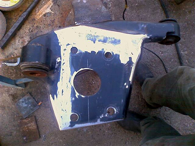בכתבה הקודמת תיעד איתי הרכבה של נעילת דיפרנציאל אוטומטית בסרן הקדמי. משחק ילדים, פתיחה וסגירה של ברגים... או שלא. על הדרך, החליט איתי לבצע טיפול שורש באחת מבעיות היסוד של כל רכב עם מתלה נפרד - זווית הציריות. וכאן אנחנו כבר לא בארץ שיפורי הBolt-on - הרתכת והדיסק נקראו לדבר והטרופר נכנס לסטאטוס של ג'יפ אמיתי. - המערכת) הנמכת הדיפרנציאל דורשת הנמכה ישירה של תושבות הדיפרנציאל בכ3 ס"מ, ולא על ידי ספייסרים מעל הבוקסות. עקב מומנטי הגזירה האדירים שפועלים עליהן, לא נכון יהיה להרחיק אותן (את הבוקסות) מן השלדה עוד יותר ובכך להגדיל את המומנטים עוד יותר. הפתרון הנכון והמקובל בעולם הוא שינוי התושבת עצמה על ידי חיתוך והנמכה של החלק שמחזיק את הדיפרנציאל באמצעות פלאח של 3 ס"מ. בקיצור, עבודת מסגרות. גילוי נאות , מעולם לא ריתכתי עד היום ומכיוון שמדובר בסוג עבודה שמצריכה דיוק וחוזק, החלטתי להעביר למיקור חוץ את הנמכת תושבות הדיפרנציאל ולתת לחבר שהוא מסגר מקצועי בחסד עליון את הכבוד לבצע את העבודה. זאביק, זאת הבמה לומר לך תודה ענקית על הרצון הטוב והמקצועיות הראויה להערצה. בעבודה על 2 החלקים הנוספים שמצריכים מסגרות גסה יותר ופחות מדויקת, החלטתי לכבד את עצמי. שינוי התושבות 1.סימון האזור המיועד לחיתוך. יש לבצע שני חיתוכים, הזווית בניהם חדה, ראו בתמונה הבאה: