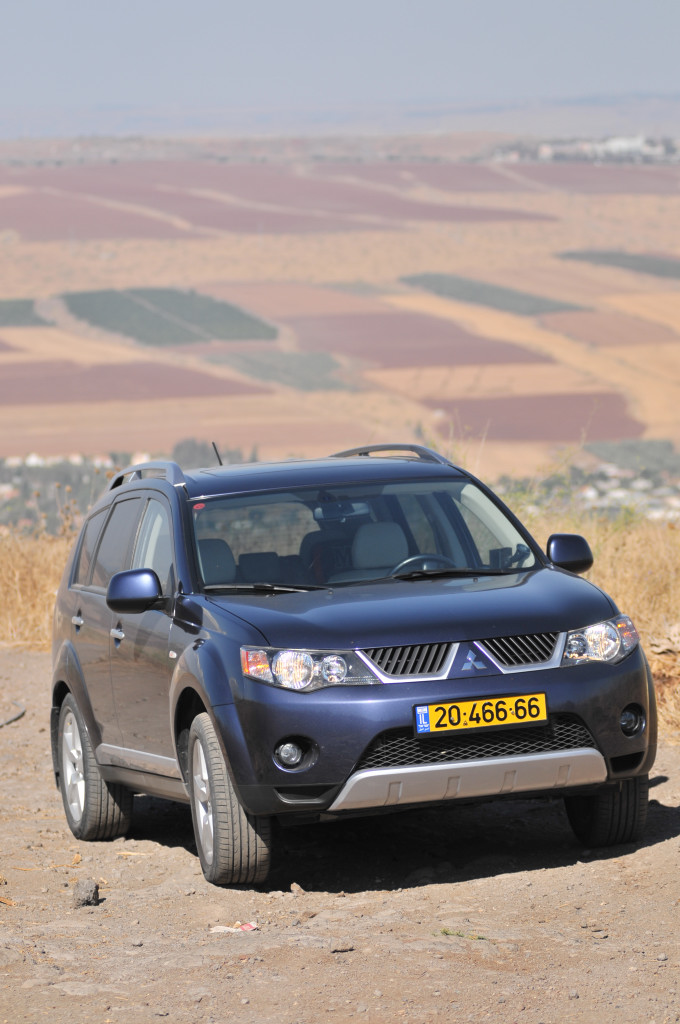 אותם המתלים הקשוחים לא אוהבים גם את הנסיעה בשביל הגלי בשולי רמת הגולן, אליו ירדנו כדי לחפש מעיין עשיר במים וצמחיה באמצע הקיץ. דווקא שביל זרוע אבנים מגוהץ יפה כאשר אנחנו רצים עליו מהר. לראש העלייה לאחד ממעיינות השוליים של רמת הגולן, מגיע כמה דקות אחרינו ג'יפ סופה וממנו יוצאים בצהלות גיל קבוצת מטיילים. הם נעצרים מול המיצובישי, ושואלים את המדריך בפליאה – מה, זה ארבע על ארבע ? המדריך עונה להם שכן, וודאי, אבל "כאן לא צריך". אם הוא רק יודע מה היה שם כמה דקות קודם... בנסיון העלייה הראשון האאוטלנדר היה משולב ל4wd האמור לספק כוח לגלגלים האחוריים בשעת הצורך. העלייה ארוכה ודרדרתית, ובאמצעה היא מקיפה סלע גדול. המיצובישי נאבק, בחיפוש נואש אחר אחיזה, והחל להתחפר בדרדרת. נראה כי מערכת בקרת אחיזה אפקטיבית הקיימת ברבים מהמתחרים הייתה עוזרת רבות במצב כזה, אך באאוטלנדר אין זכר למערכת כזו. מצב קצת מסוכן, כי לחיצה על הבלם גורמת למיצובישי המגודל להחליק הצידה על גבי הדרדרת הוולקנית, לכיוון הסלע הגדול. יצאנו מזה בתגובה מהירה ובהילוך אחורי, והניסיון השני עם דיפרנציאל מרכזי נעול היה יותר קל. באין הילוך כוח, ובעליה תלולה, אי אפשר לזחול ונדרשת תנופה. השביל מפתל בין סלעי בזלת נשכניים, והמצב לא נעים כשמדובר ברכב רך ופגיע, עם זוויות גישה ועזיבה שלא מתוכננות לשטח, ולא טריוויאלי על גבי דרדרת. השביל דורש מנהג האאוטלנדר נהיגה מדויקת מאוד, וגובה כמה שניות של דפיקות לב מואצות. בשורה התחתונה הגענו למעיין, המים קרים, התאנים טריות, והכל נשכח. אבל זה היה יכול להיגמר עם צלקות-פח למזכרת.