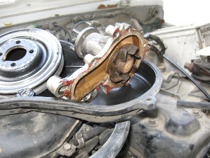 • הנחתי כרטיס פלסטיק, מעין פלגל כזה על האלטרנאטור בכדי שלא יכנסו לתוכו מים בעת פתיחת התרמוסטט.