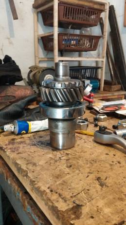 להוסיף שימסים בין המיסב לגל כך שאחרי סגירת הטבעת הקפיצית יהיה מרווח של 0.076 מילימטר בין הטבעת לגלגל השיניים.
