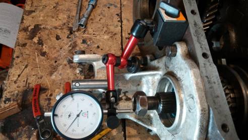 עד כאן החלק הקל, ורואים כבר את הסוף... עכשיו מגיע השלב המעיק. כדי לכוון את החופש של גל היציאה האחורי יש להוסיף או להוריד שימסים בין מיסב היציאה האחורי של הגל האחורי לבין הגל: