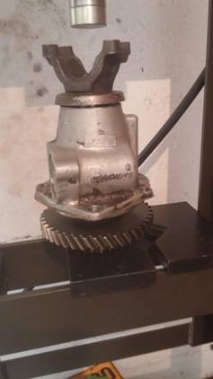 לכיוון גל הכניסה יש לחלוץ את המיסב הקידמי מבית המיסב. יש לפרק את הטבעת הקפיצית ואת גלגל השינים, ולאחר מכן להפריד את המיסב מהגל.