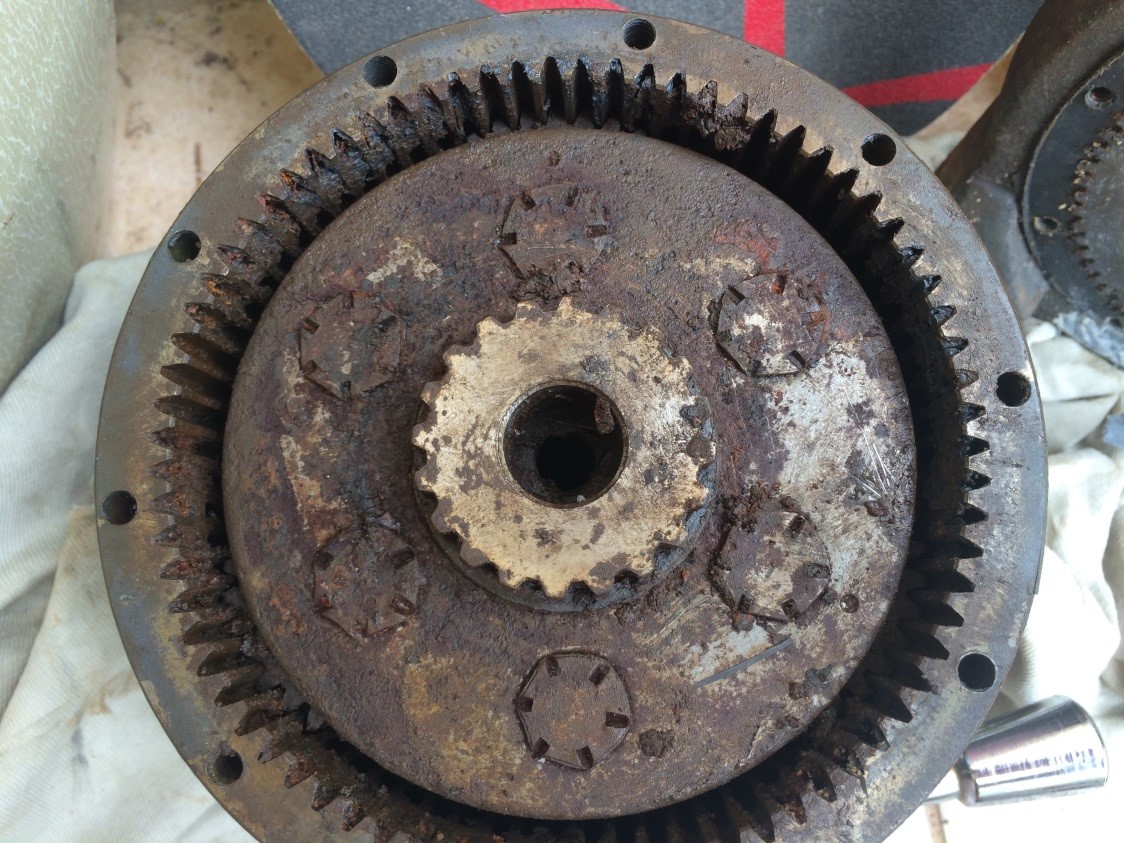 בשלב הזה הכננת כבר הייתה מפורקת ואני התחלתי להאמין שלי זה יעלה יותר כי המנוע היה חלוד, נראה "גמור", הברגים שמתחברים למגעים הפנימיים היו משותכים והמגעים הפנימיים שבורים, הכבל היה במצב מפחיד וחייב החלפה (כבל חדש עולה בסביבות 150 דולר, סינטטי בסביבות 300 דולר) הגיר הפלנטרי נראה כמו עיסת בוץ מביצות החולה לפני הייבוש והייתה בו לא מעט חלודה.