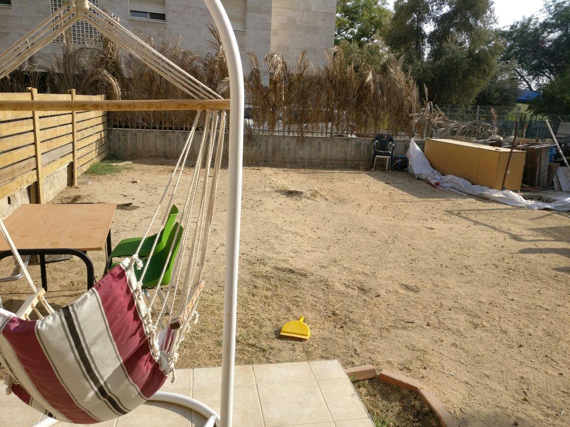 החצר מלאה חול, אחרי הכל מדובר בבאר שבע, אבל האדמה מאד מאד סלעית וקשה.