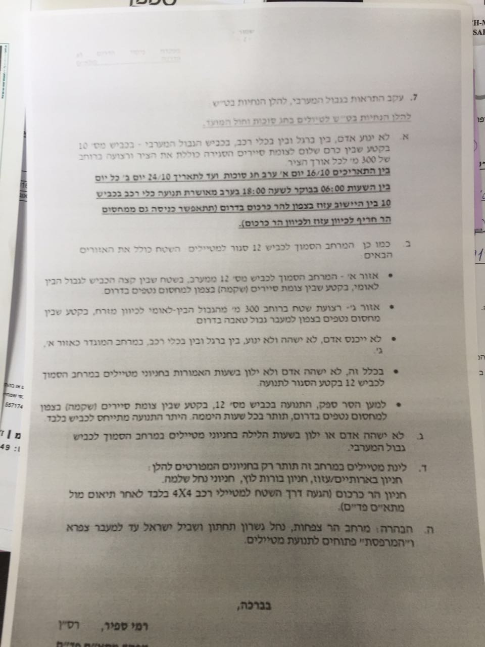מה 16/10 עד ה 24/10 בין השעות 6:00 עד 18:00 מאושרת תנועת כלי רכב על כביש 10 בין עזוז להר כרכום ותתאפשר גם כניסה ממחסום הר חריף צפונה לעזוז או דרומה לכרכום.