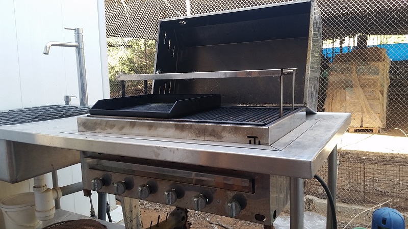 גריל נירוסטה של "שאולי גרילס". 6 מבערים. השתלתי בתוך השולחן.