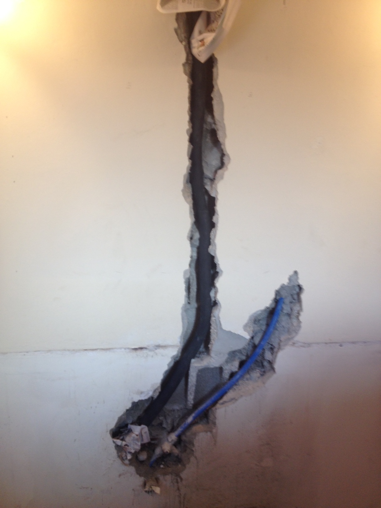 פיצוץ בצינור SP הנמצא בקיר המקלחת אילץ פתיחת הקיר והחלפת הצינור התקול.