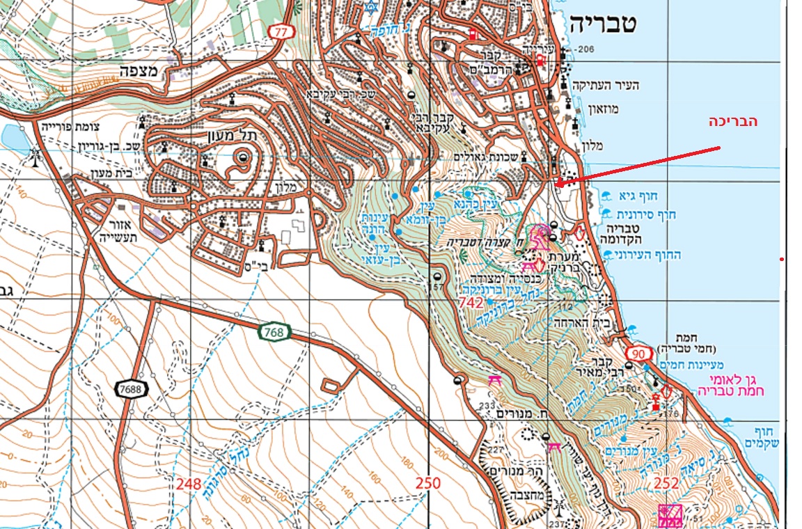 " מבנה בריכה גדול ועתיק , ששימש מאגר מים בתקופה העתיקה . הבריכה מהווה כנראה חלק ממערכת אספקת המים של טבריה בתקופה הרומית ביזאנטית . מערכת זו הובילה את מי המעיינות הנובעים בנחל יבנאל , כ 15 ק"מ מדרום לטבריה , באמצעות אמת המים , המכונה בפי הציבור 'אמת ברניקי . ' האמה , שהיתה בנויה על גבי מסד מוצק וחלקים ממנה הורכבו מחוליות צינור עשויות בזלת , הזינה את המאגר יומם ולילה . לאורכה של האמה נתגלו כמה הסתעפויות לעבר בריכות מים ומתקנים שונים באזורי בית ירח וטבריה "