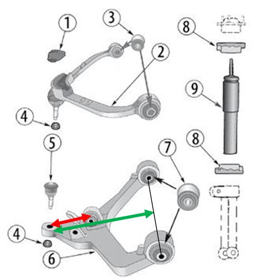 בגלל זה, מידת הגבהה של ספייסר במידה נתונה לא תהיה זהה ברכב עם אורך משולשי מתלה שונים, או נקודות עיגון שונות לשילדה.