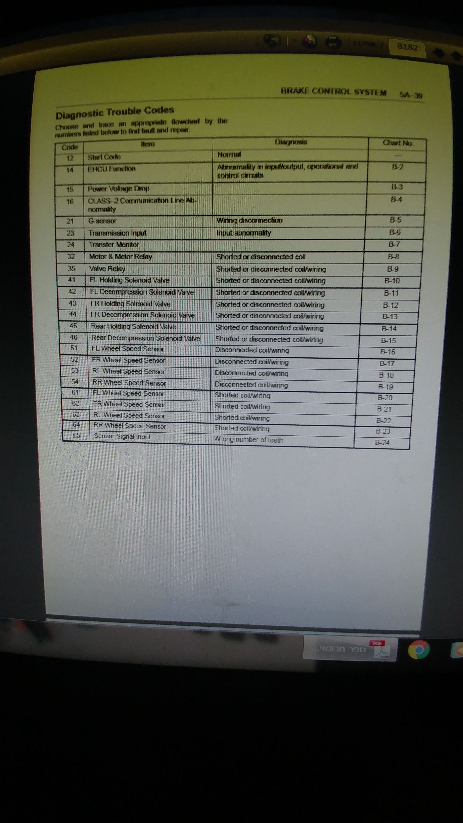 לגבי קוד תקלה מ abs ניתן לישלוף ע"י קיצור פינים 4 ו 12 בקונקטור dlc כשהסוויץ׳ סגור, לאחר הקיצור בפתיחת סוויץ׳ נורת abs תהבהב לפי הקוד שמתקבל, היבהוב 1 הפסקה ואחריו 2 היבהובים זה קוד 12 שזה קוד התחלה שהוא תקין.