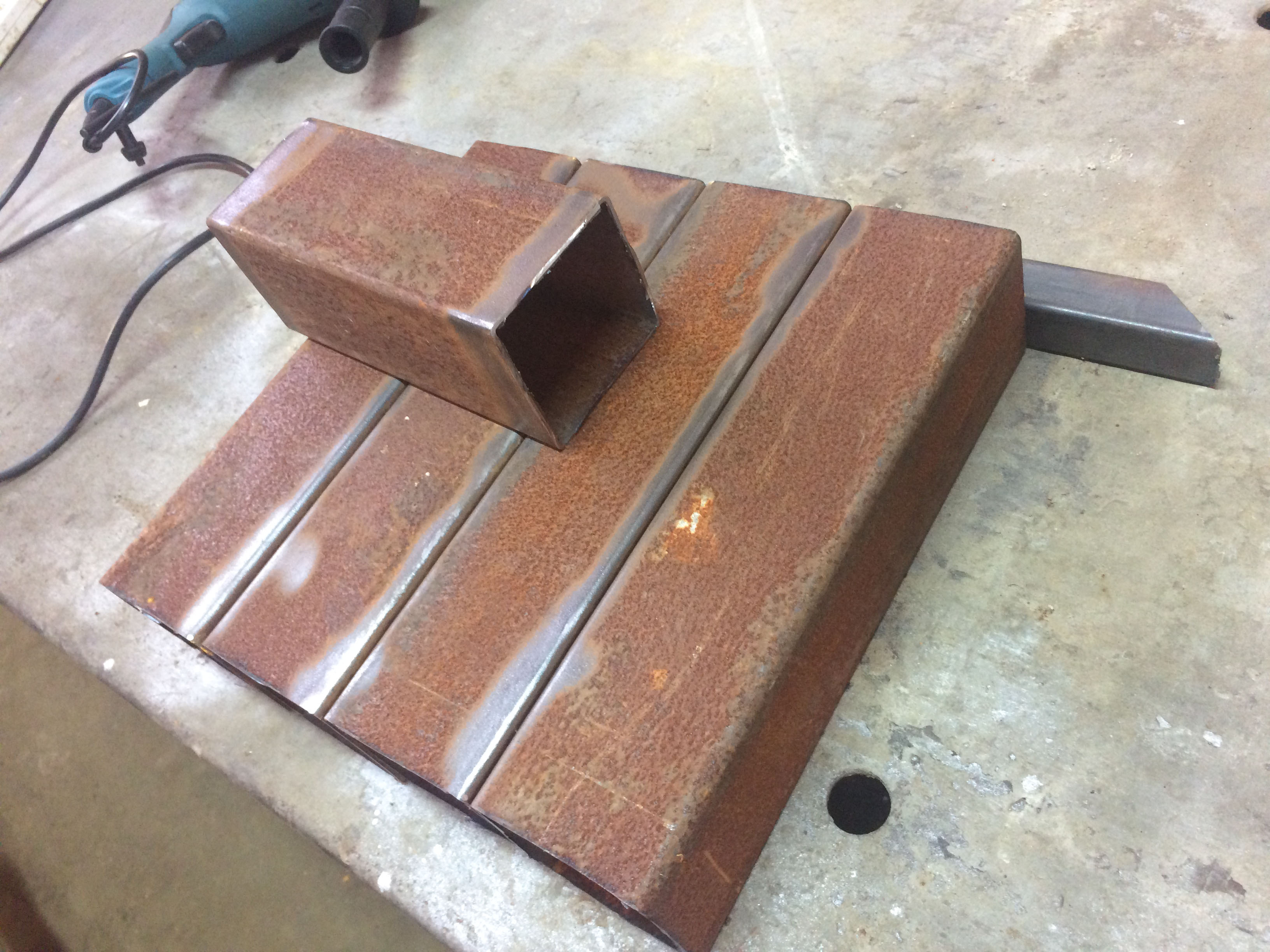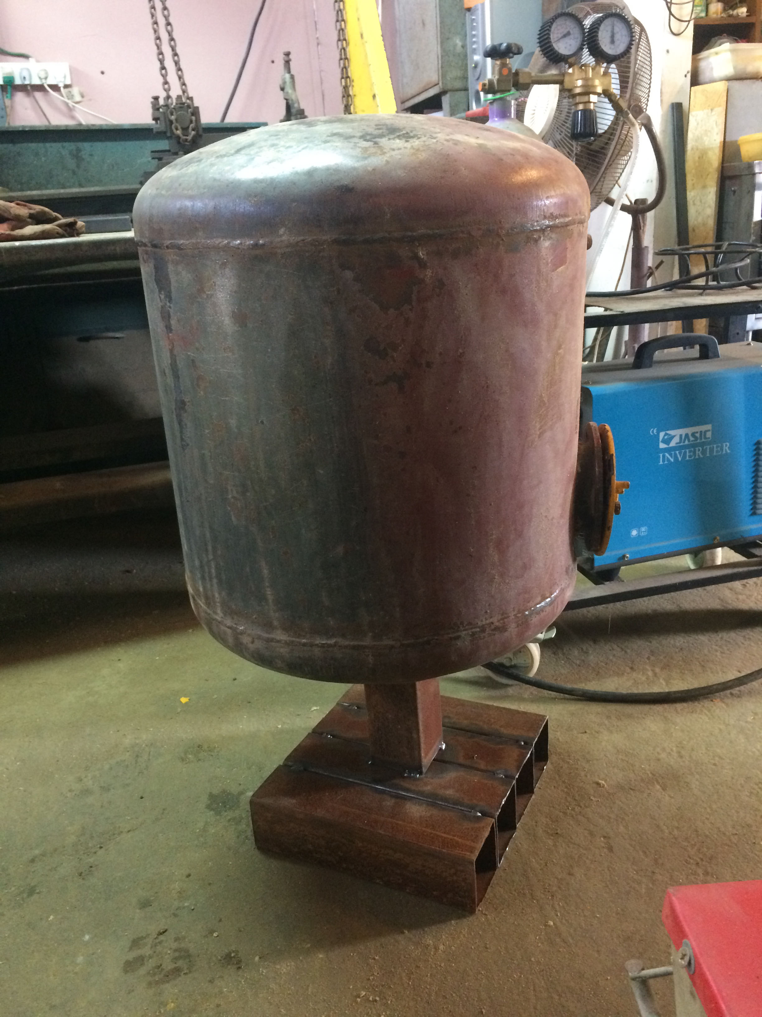 בשלב זה בניתי רגל לדוד וחתכתי את פתח הקדמי. הכל מרותך עם מעט פיקים ואני פתוח לשינויים והמלצות.