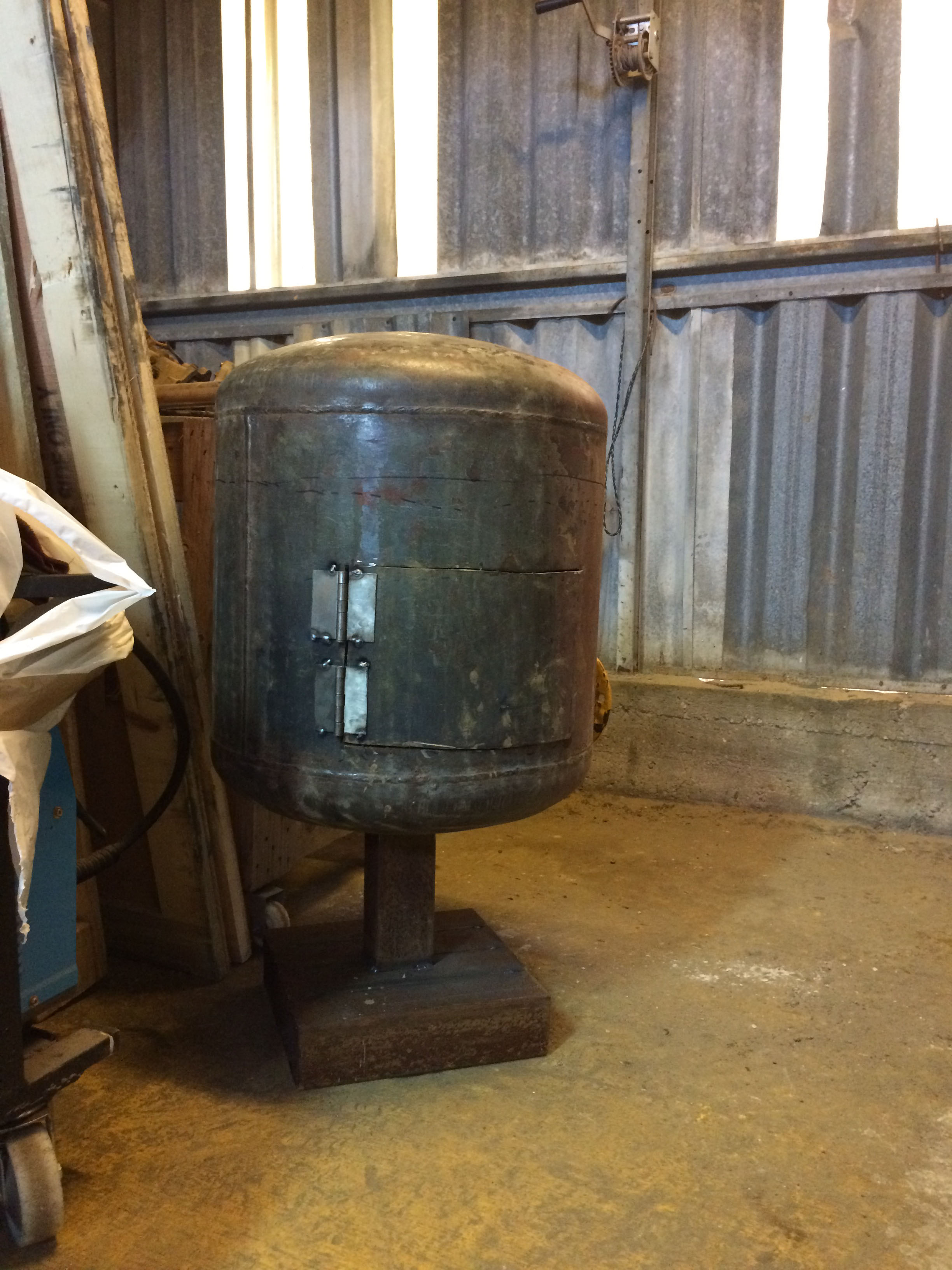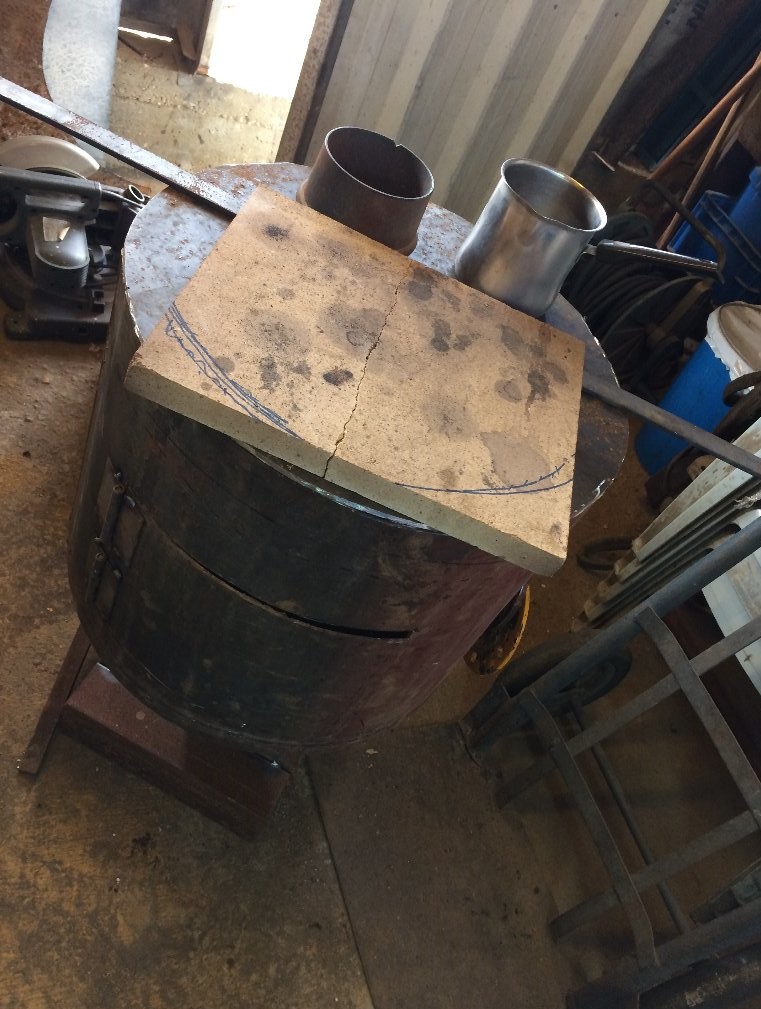 בחלק הקדמי אני הולך לייצר את תא האפייה סגור עם מכסה שיבנה מהכיסוי המקורי של הדוד.