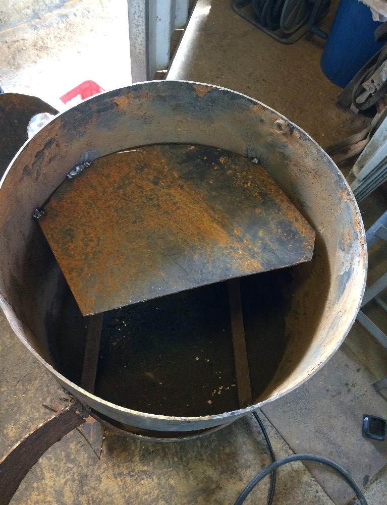ריתכתי 2 סרגלים בתחתית כדי שאוכל להניח עליהם רשת להפרדת העפר מהגחלים והאש. הרשת מתוכננת להיות בגודל הדלת כך שאוכל להוציא ולהכניס אותה (ומניח שלהחליף אחרי תקופה).