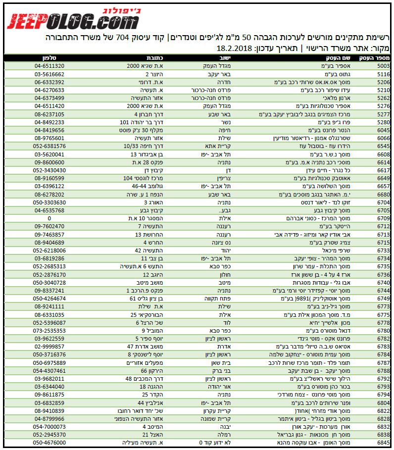רשימת עסקים מורשים להתקנת (בדיקת/אישור) הגבהות