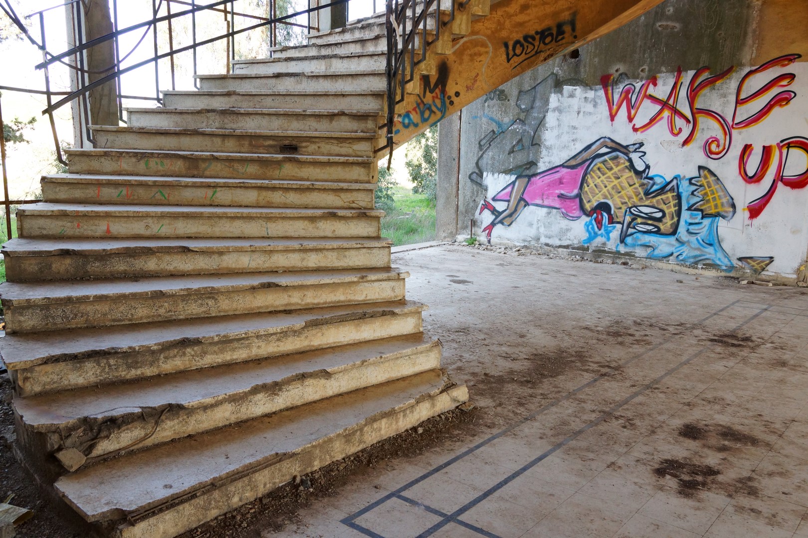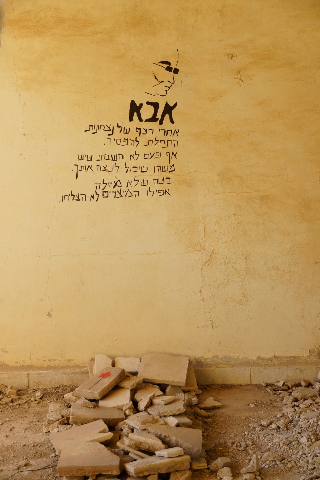 בקומה השניה יש מעין קבר מיסתורי שמישהו עשה לזכר אבא שלו ויש שם פתק עם שיר עצוב