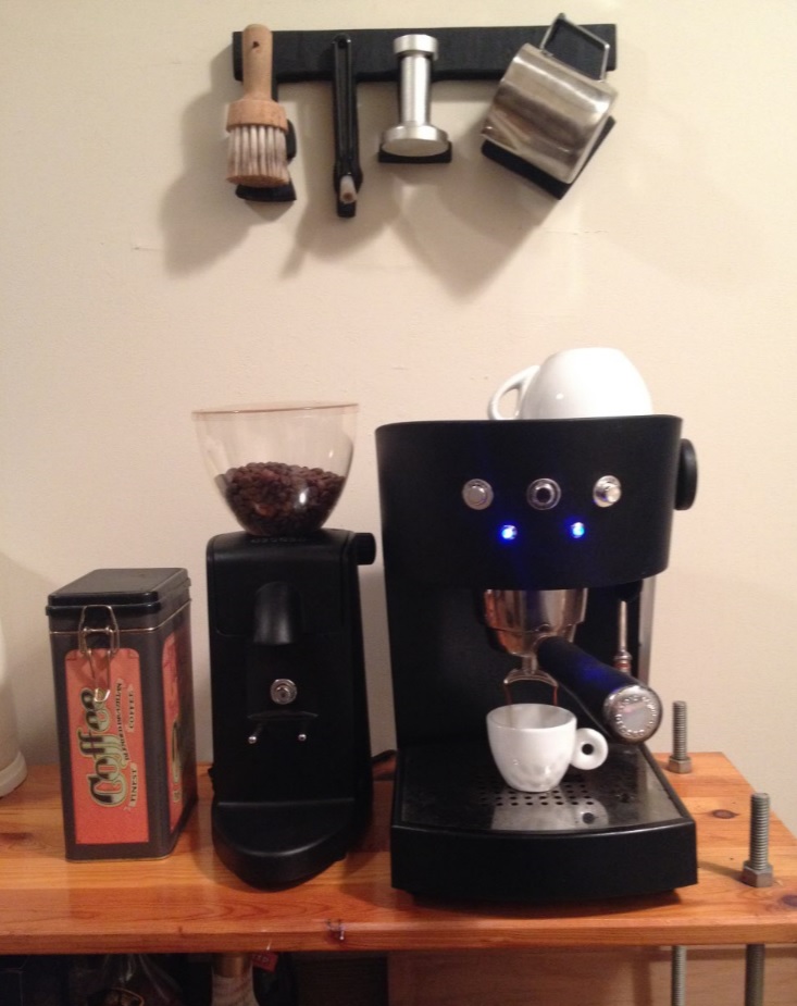 מכונת קפה ידנית Ascaso Basic עם סטימר חזק ומטחנת פולי קפה של 1200 ₪. במצב חדש.