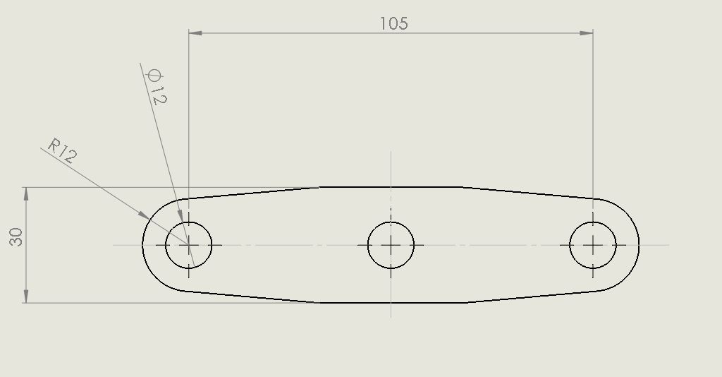 השארתי חומר מסביב לחורים ברוחב רדיוס של החור, כלומר 6 מ"מ. קוטר ראש בורג M12 הוא 18 מ"מ, תוסיף לזה שייבה שהקוטר שלה 20-22 מ"מ. ישאר עוד 2-3 מ"מ מעבר לשייבה. כל מה שמעבר לזה מיותר.