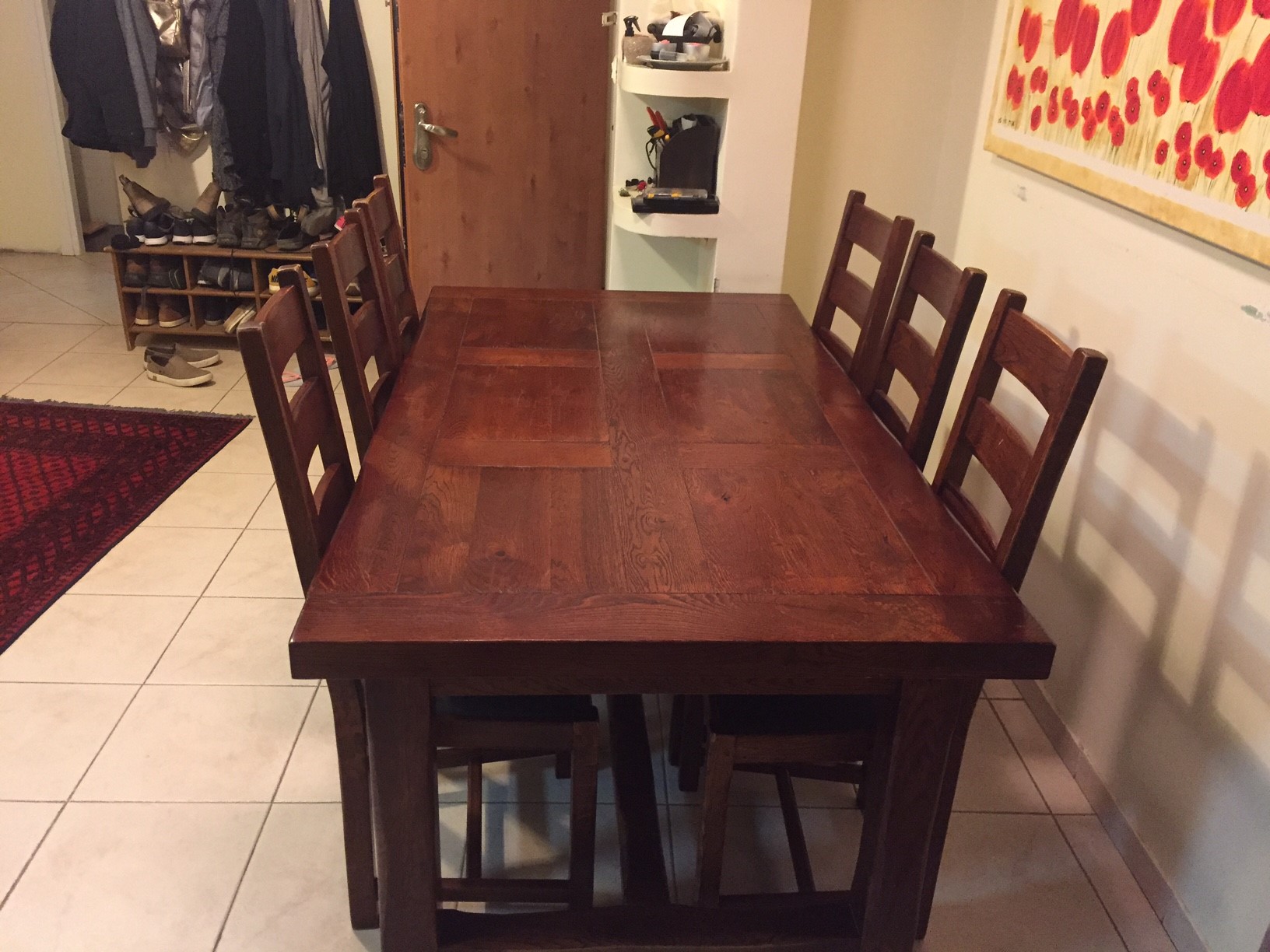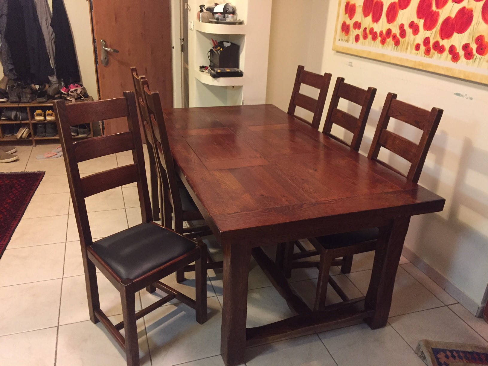 למכירה פינת אוכל מעץ אלון במידות 1.80X1.00 ושתי הארכות של 0.5 מטר כל אחת,