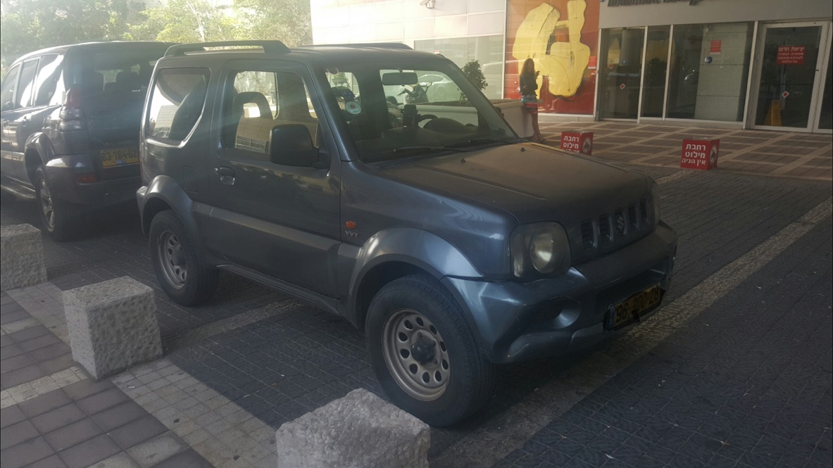 סוזוקי ג'ימני, יד 2 בתוך המשפחה (נקנה מאחי), שמור ומטופל, לא עבר התעללות שטח והיה בשימוש עירוני. עבר לפני כחודשיים טיפול גדול (החלפת סננים שמנים, כבל קלאצ') מטופל בקנאות רק במוסכים מורשים (דרך השטח ולאחרונה נ.ש.ר).