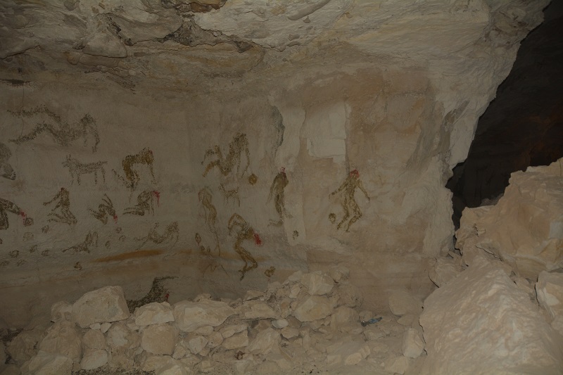 ההפקה השאירה את התפאורה הזו על קירות המערה.