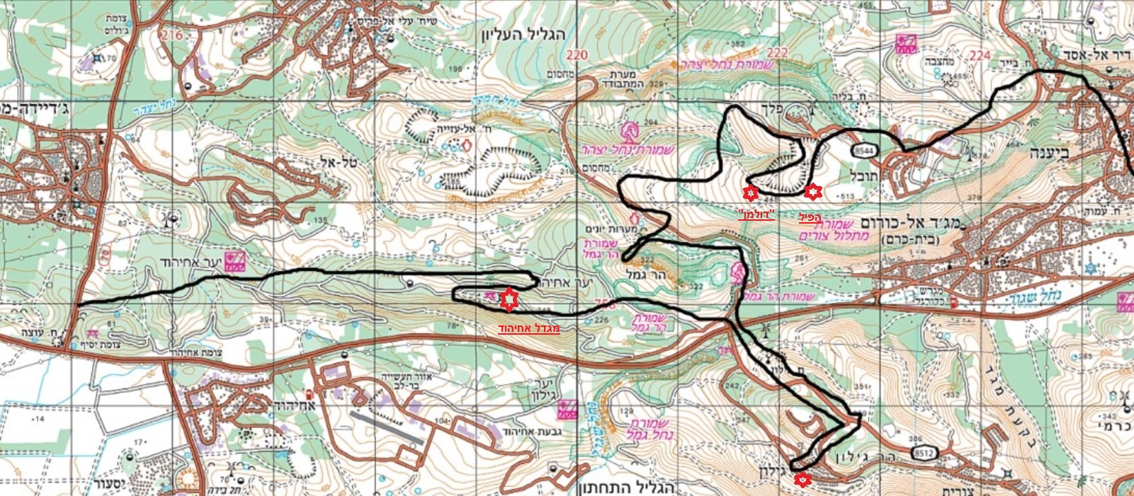 יצאנו מיער אחיהוד ופנינו לכיוון מצפה גילון למצפור מיכל (התמונה מתוך המצגת ששלחתי לחבר'ה)