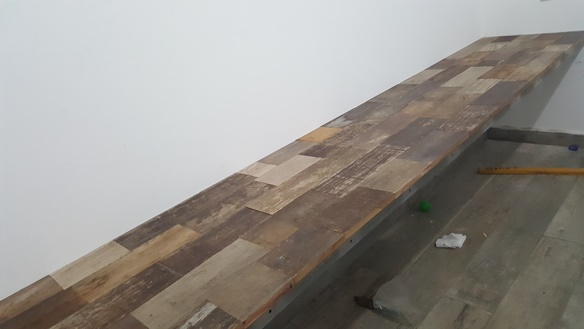 כאן הוא מערבב עם האפוקסי נסורת/אבקת עץ למילוי החריצים.