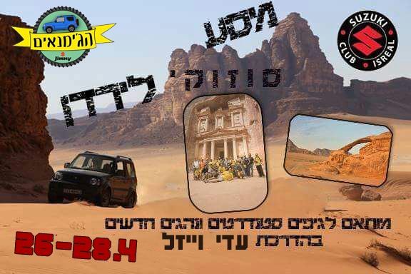 מסע שטח אתגרי כולל לימוד נהיגה בדיונות, המשלב טיול באתרי תיירות בירדן ובמסלול מיוחד לרכבי סוזוקי בעלי הילוך כוח!