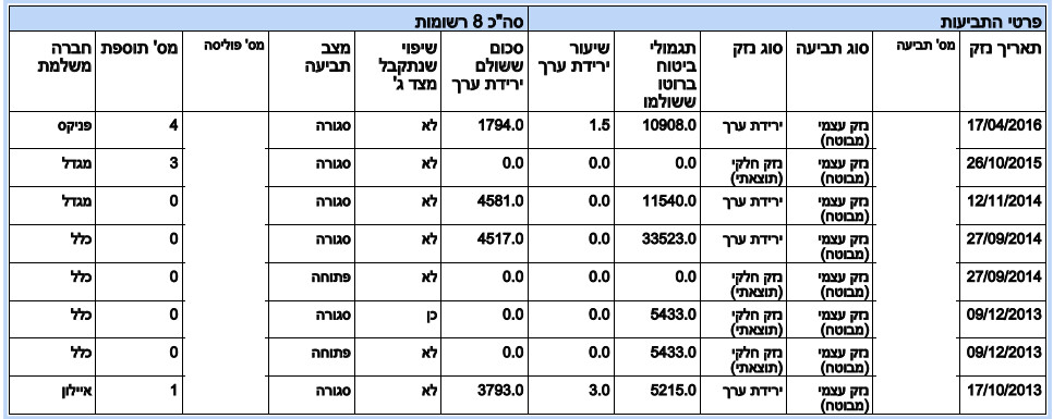 אבל, בדיקה של היסטוריית הביטוח, העלתה את התוצאה המצורפת.