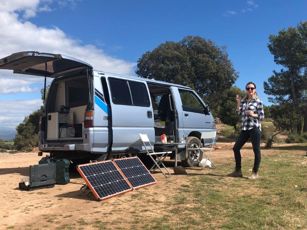 את הלילה הראשון עשינו עם הוואן בפינה נחמדה בהרים בסביבה. התמקמנו בחושך ורק בבוקר גילנו שסביבנו פסגות מושלגות (הפירינאיים הספרדים נראים מרחוק).