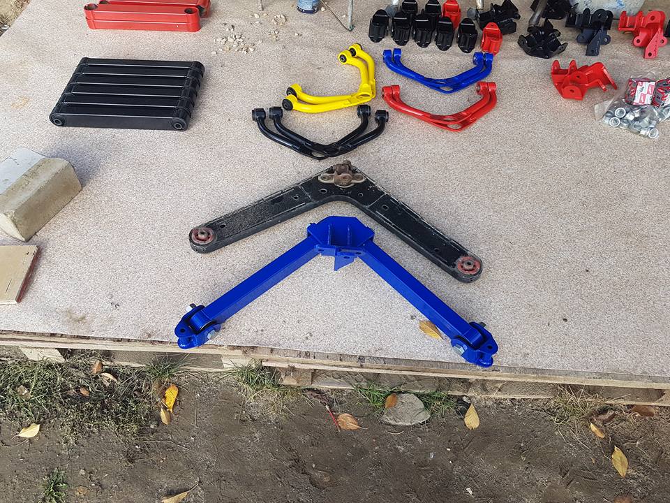 יש בחור חביב שמייצר קיט שממקם את הבומראנג בפח- והופך את המתלה האחורי לפור לינק לכל דבר. הבחור הזה בקשר מצוין איתי כבר שנתיים וכסוג של מחווה למצבי האנוש (וגם הפניתי לו לא מעט אנשים שביקשו "כמו של תומר") מבקש לשלוח לי את הקיט שלו במחיר מצחיק. בתמונה המצ"ב ניתן בדיוק לראות את הבומראנג המקורי - ולצידו את הפור לינק, שמתחבר לדיפרנציאל האחורי בנקודות העיגון המקוריות ולצמד נקודות העיגון של הבומראנג המקורי. וכמובן- בעוד שהבומראנג הוא יחידה קשיחה- כאן יש 2 זרועות שנעות על בושינגים