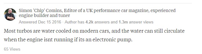 בסוף נסיעה זה לא כדי שהטורבו יוריד סלד... זה כדי שהשמן ירוץ בו (ובחלק מהדגמים גם נוזל קירור) על מנת שיקררו אותו וימנע מצב שבו השמן רותח/נשרף בצינורות. לפחות ככה אני מכיר אתה זה. פעם הוסבר לי שבדגמים מסויימים ישנם מנגנונים שדואגים שעדיין יזרום קצת שמן לאחר הכיבוי
