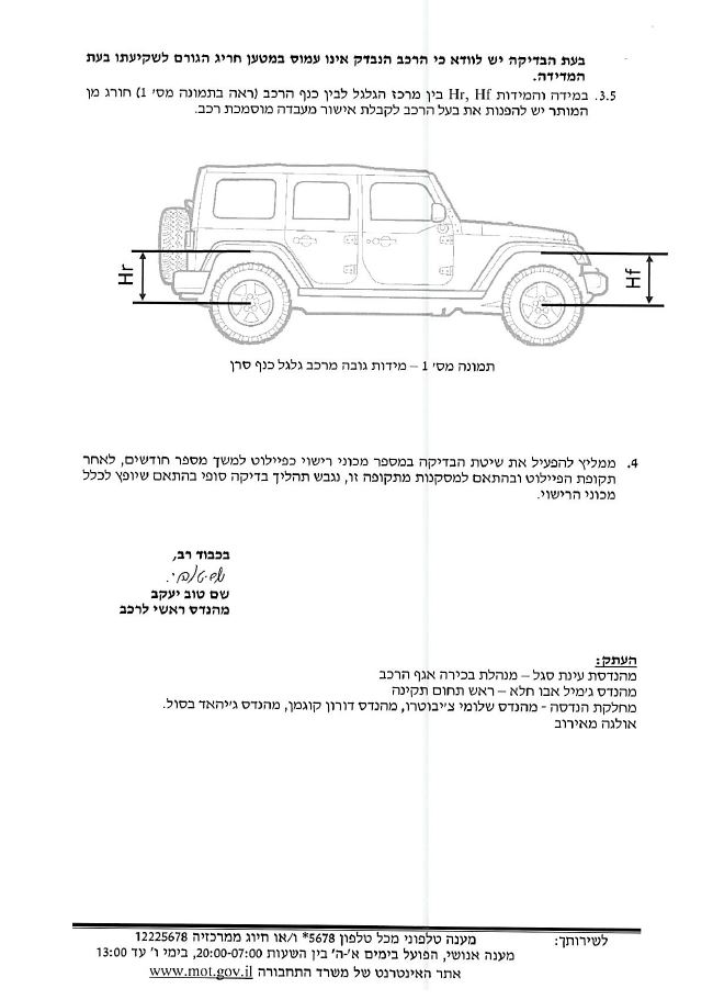 סע למוסך של היבואן ותביא אישור שהרכב לא מוגבה