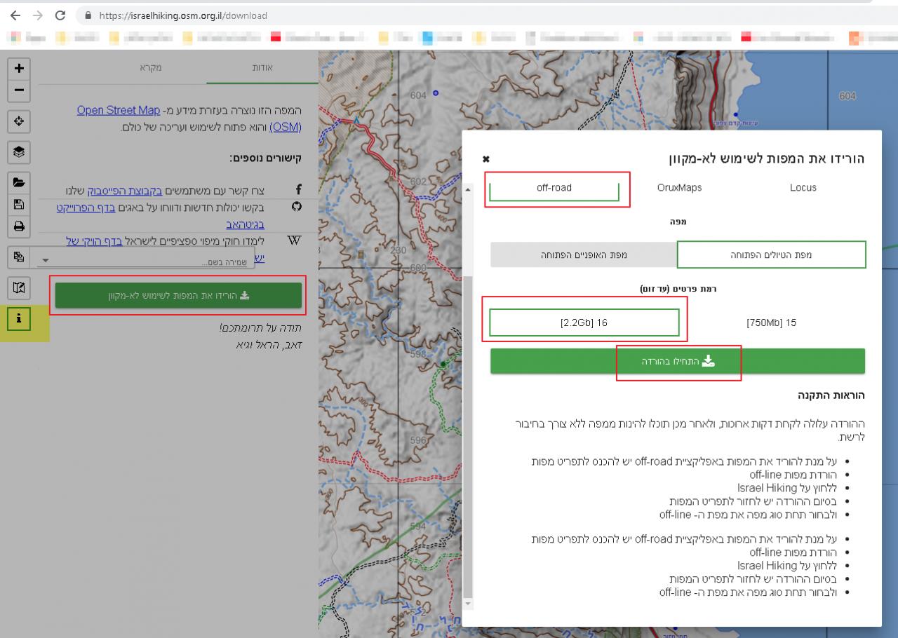 אבל - בחודשים האחרונים לא מצליח להוריד את Israel Hiking (רמה 16) ל-Offline מתוך האפליקציה - כמעט תמיד ההורדה הופכת לאיטית מאוד ונתקעת.