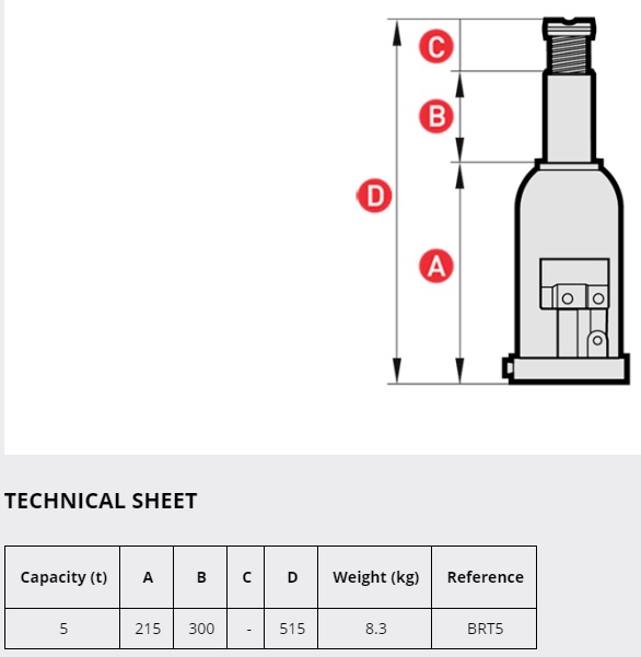 למרבית היצרנים יש מוצרי 5, 6 ו 8 טון (שתי בוכנות + בורג) שמסוגלים להניף עד 500 MM (נע בין 443 ועד 513).